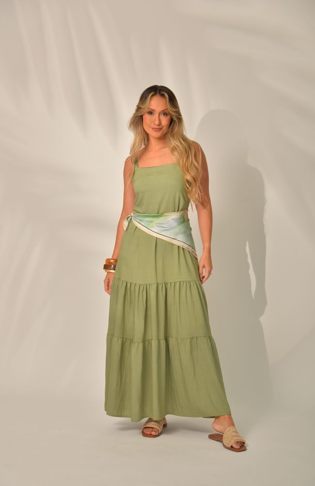 VESTIDO MIDI MANGA SOLTA LASTEX COST