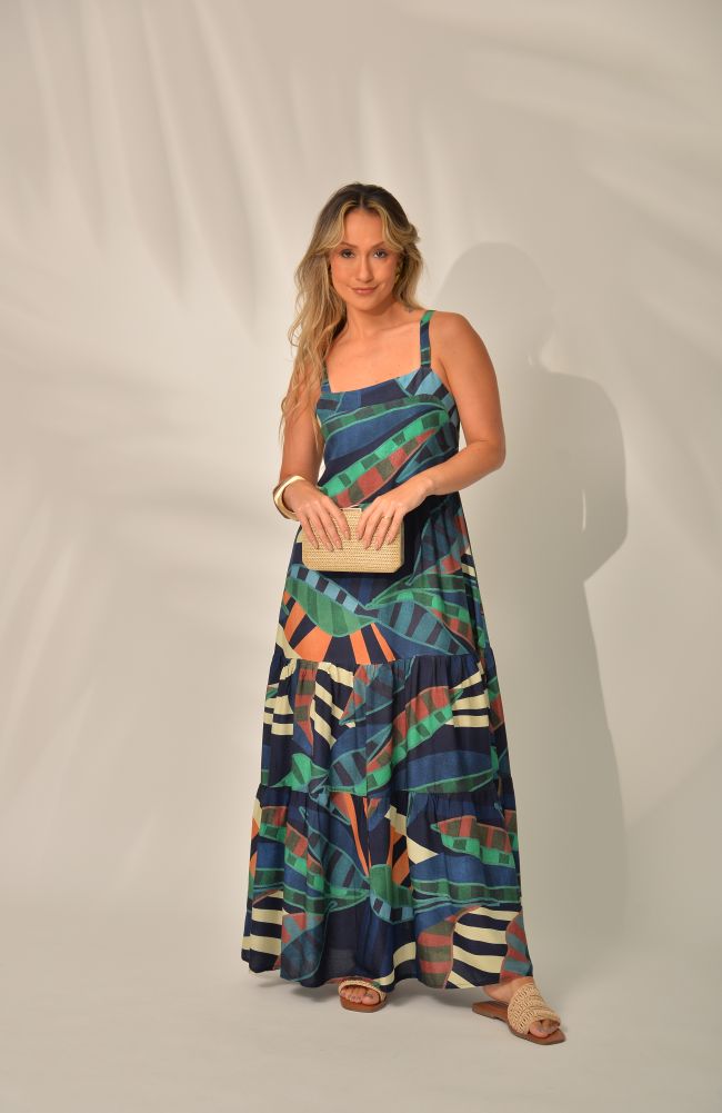 VESTIDO LONGUETE BUSTO ESTAMPA FRUTAS